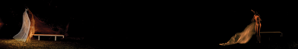 This series takes this concept and transfers it to a series of dance movements expressing the relationship between darkness and light. Combining the dance movements with the reflection of light on the dancers gowns on a dark background gives a fugue in dark and light during a performance.